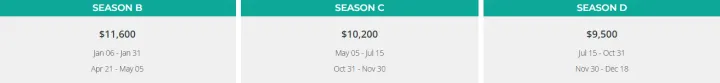 ALL REMAINING B SEASON WEEKS JANUARY 6, 2025 - JANUARY 31, 2026 ARE NOW OFFERED AT C SEASON RATES.